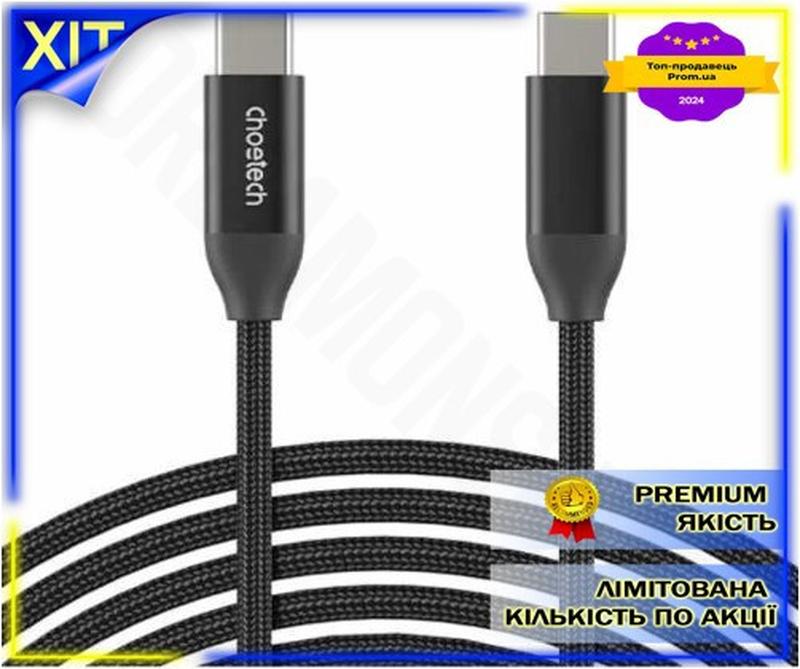 Dm кабель type-c 2 спецификация 2.2 м choetech черный 240 вт для зарядки и синхронизации 5...