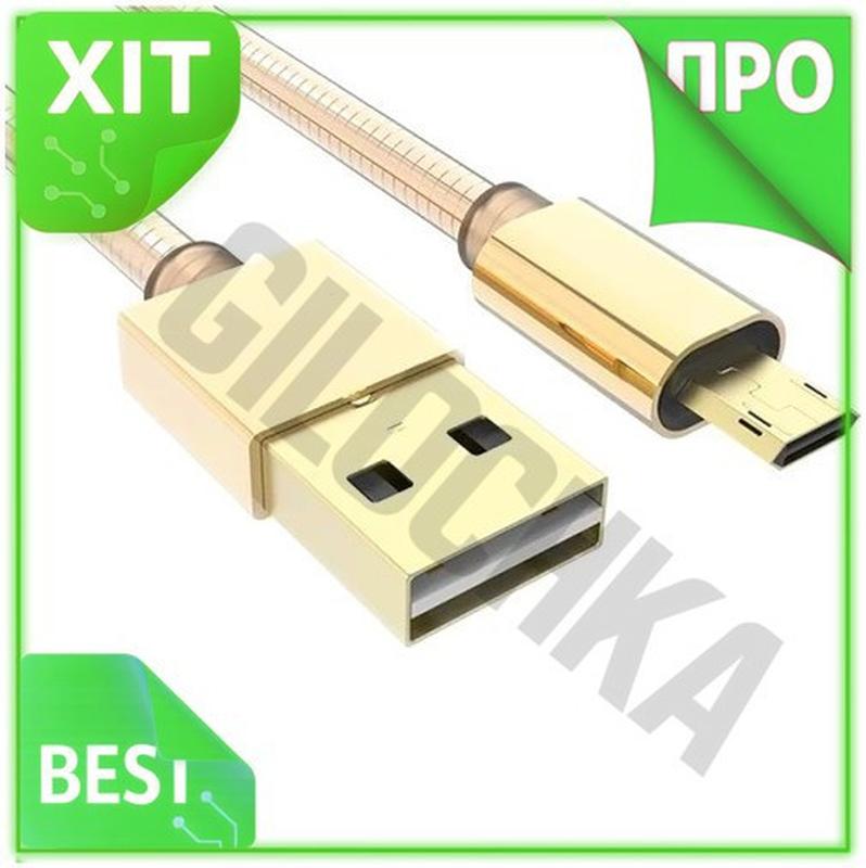 Ve кабель usb 2.0 am new version - microusb 1 м ldnio 2.4a золотий зарядний кабель для сма...