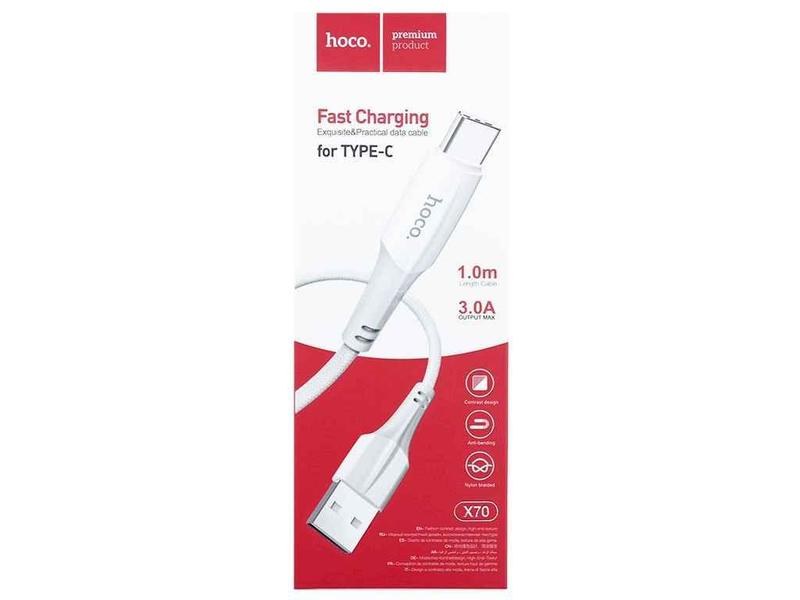 Кабель TYPE С X70 3A тканинний білий 1м (31) ТМ Hoco