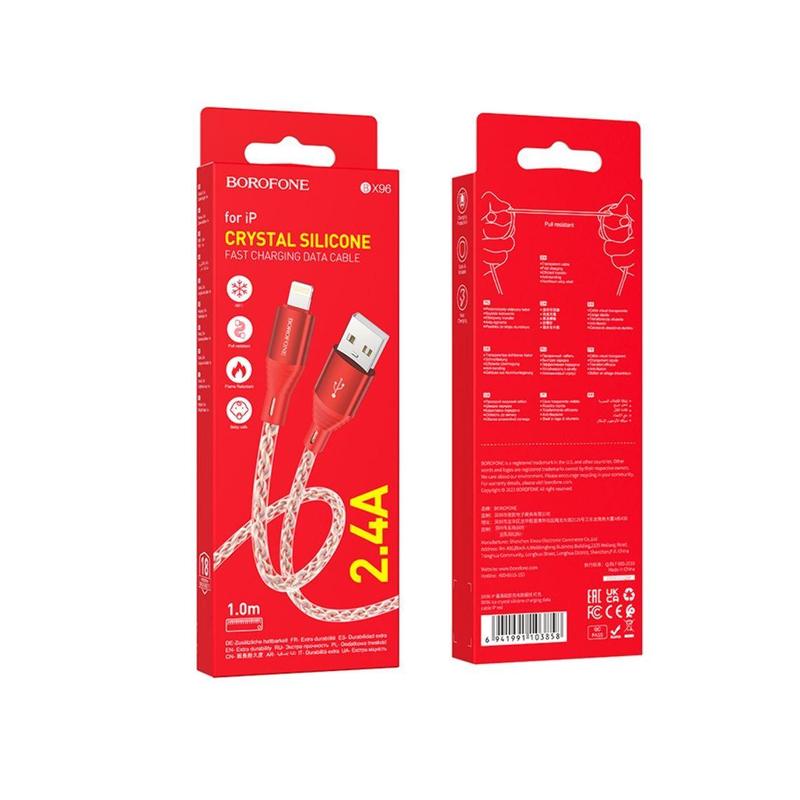 Кабель USB - Lightning Borofone BX96 Оптимізуйте зарядку пристроїв за допомогою кабелю Borofone BX96 USB to Lightning. Цей червоний кабель поєднує стиль і функціональність, забезпечуючи надійний зв'язок між вашими пристроями. Особливості: - Довжина: 1м; Вага: 29г. - Зовнішній матеріал: прозорий силікон. - Матеріал роз'єму: алюмінієвий сплав. - Провідник: (50/0.08)*2 + (16/ 0.08)*2, діаметр 4.5мм. - Підтримка зарядки до 2.4A. * * * Мінімальна загальна сума замовлення в кошику -- 333грн. Наш графік роботи: сб-чт 09:00-17:00. Замовлення, оформлені після 16:30, будуть прийняті та оброблені на наступний робочий день! Товар вартістю до 15$ поверненню та обміну не підлягає!!!