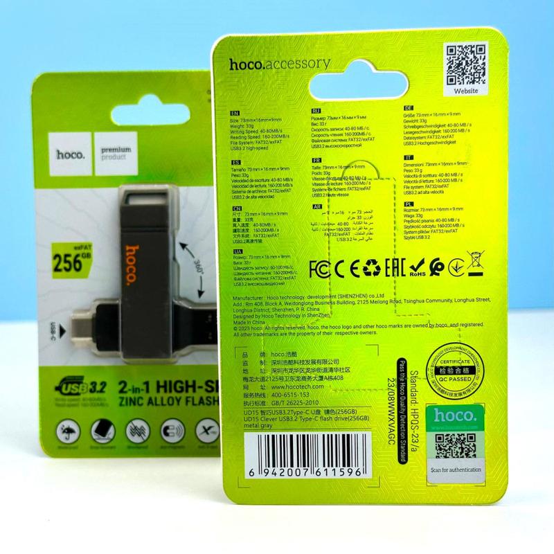 Usb флешка hoco 2в1 ud15 256gb usb3.2 type-c clever