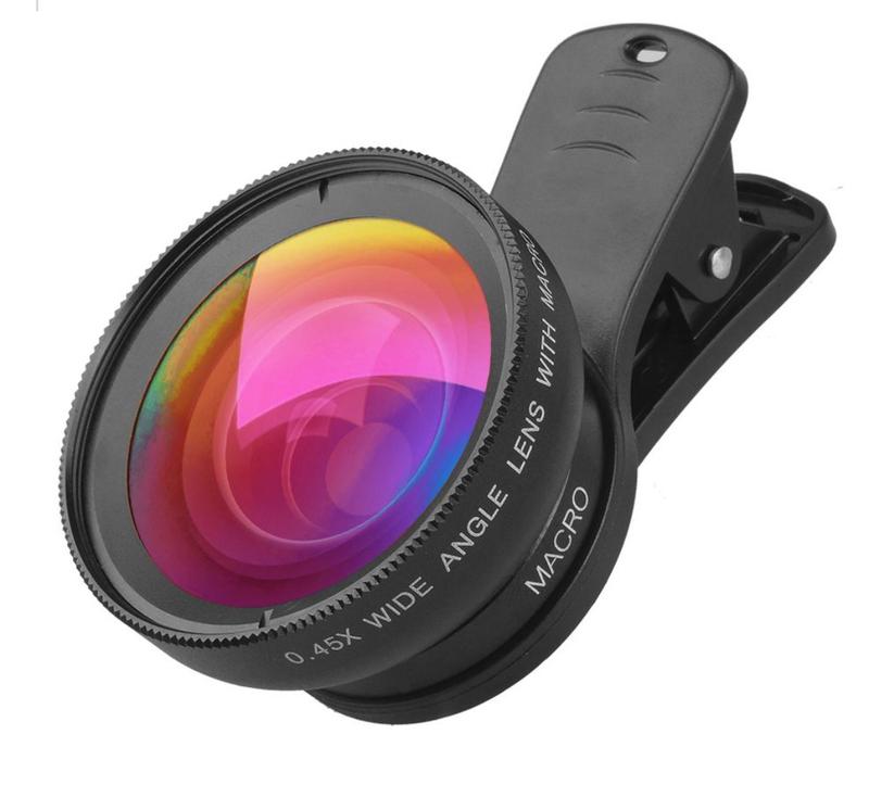 Професійний HD-об’єктив мінімізує відблиски, ореоли та інші артефакти для чудової чіткості. Високоякісна алюмінієва конструкція підвищує довговічність виробу. Ширококутний об’єктив 0,45X: щоб використовувати ширококутний об’єктив, просто приєднайте обидві лінзи разом. Завдяки надширококутному об’єктиву 0,45X ваш світ стане більшим, ширшим і яскравішим. Відкриває поле зору для захоплюючих фотографій пейзажів або селфі. Макрооб’єктив 12,5X: щоб використовувати макрооб’єктив, просто відкрутіть ширококутний об’єктив. Наближає вас до об’єкта в 12,5 разів. Досліджуйте природу за допомогою величезного 12,5-кратного макрозбільшення з оптимальною відстанню для макрозйомки від 0,8 до 1,6" (2-4 см), підходить для зйомки крупним планом комах, прикрас, монет, рослин тощо. Комплектація 1 х ширококутний об’єктив + макрооб’єктив 1 х затискач для об’єктива 1 х сумка для зберігання 1 х тканина для чищення Примітка: Макрооб’єктив і ширококутний об’єктив прикріплені разом, коли ви їх отримуєте.