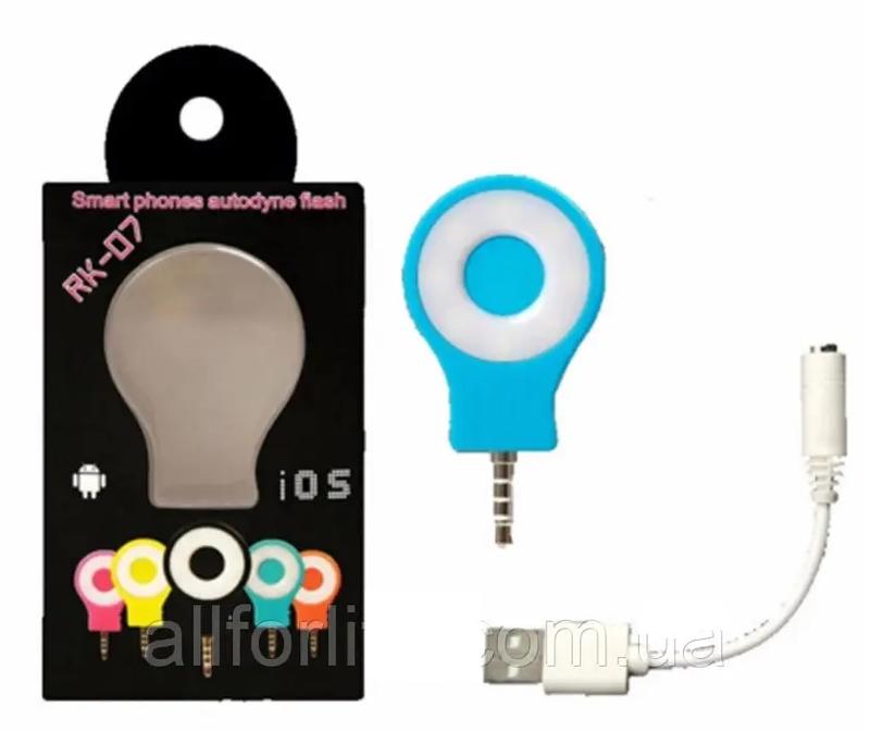 Спалах до телефона для селфі на 8 led світодіодів зі штекером 3,5 мм білий