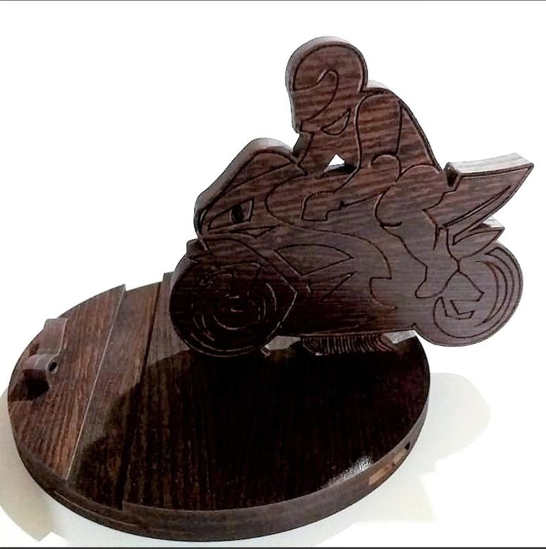 Стильна настільна підставка під смартфон "Байкер" дуже красиво виглядає на столі, і стане гідним презентом для близької людини, друга, керівника чи колеги! За вашим бажанням можна вигравірувати будь-який напис. Наприклад, якщо вирішили зробити комусь такий подарунок, хороший варіант зробити його іменним. Також можна нанести логотип, приємні слова, ми постараємося реалізувати всі побажання. Оптимальні розміри забезпечують стійке положення смартфона; 📌Колір - венге; 📌Матеріал: високоякісний ламінований двп. 📌Спосіб виготовлення: лазерне різання та гравіювання; 👉Можливо нанесення будь-якого логотипу. 🚚Пересилається в надійній упаковці. 🚀🚀🚀Швидка доставка по Україні, країни СНД. ДОСТАВКА БЕЗ ВИХІДНИХ !!!