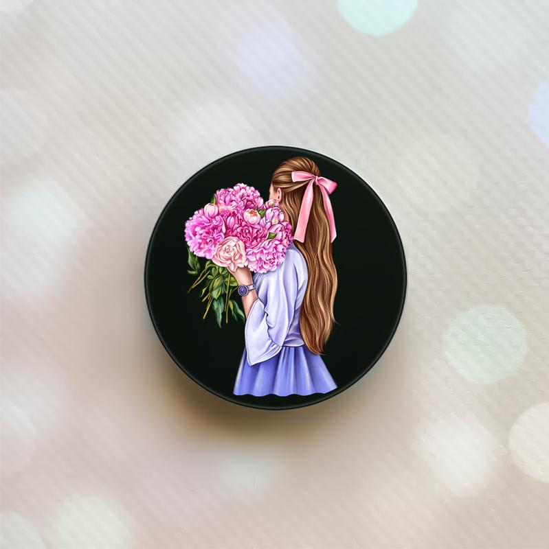 Держатель для смартфона / планшета попсокет popsocket черный :: девушка с пионами (принт 1...