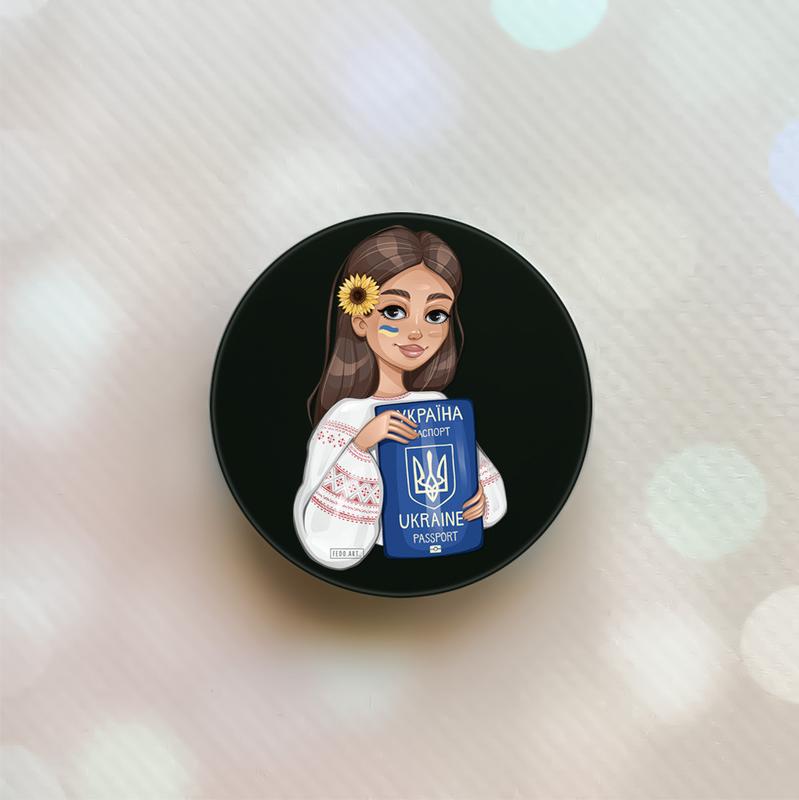 Тримач для смартфона / планшета попсокет popsocket чорний :: дівчина з паспортом (принт 12...