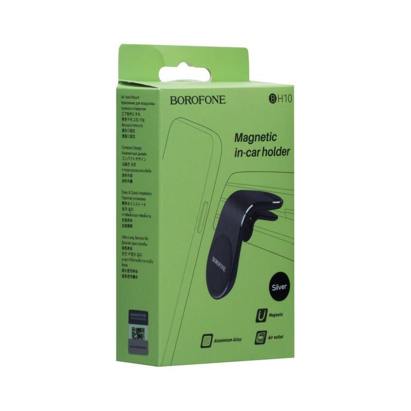Увага! Зважаючи на особливості розрахунку з постачальником, даний товар відправляємо тільки за повною або частковою передоплатою. Автотримач Borofone BH10 - дуже зручний і стильний автотримач. Конструкція пристрою забезпечує вільний доступ до роз'єму живлення утримуваних гаджетів. Модель представлена в декількох відтінках. Аксесуар виконаний в стильною та елегантною формою з якісного металу, що гарантує тривалий термін служби. Фіксація телефону на тримачі здійснюється за допомогою металевої пластини на зворотному боці задньої кришки телефону або під чохлом. Потужний магніт не робить шкоди смартфонів і не впливає на їх працездатність. Кріплення здійснюється на решітку системи вентиляції в салоні авто. У комплекті дві металеві пластини. Унікальні моделі автодержателей від бренду Borofone урізноманітнюють вітрину вашого магазину.