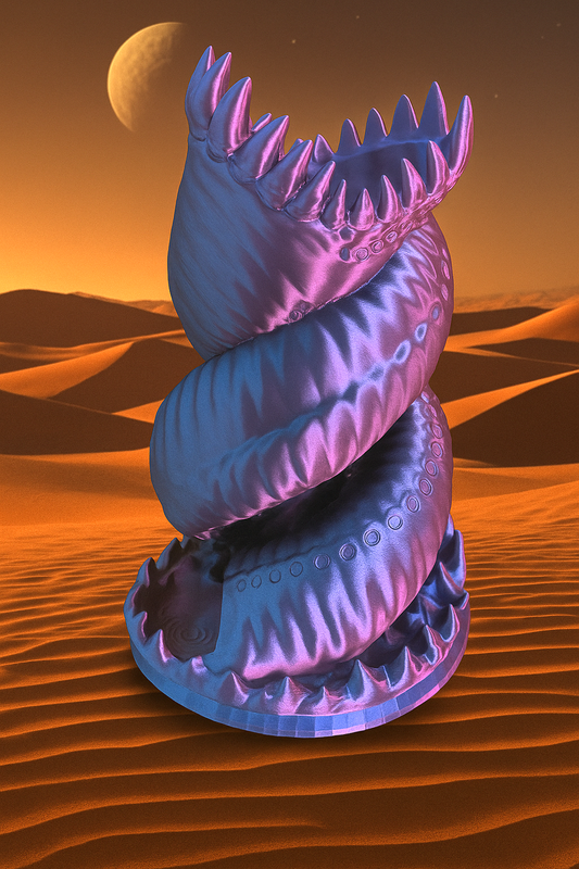 Здійсніть стрибок у серце дюн Аракісу з цією неймовірною Вежею для кубиків "Піщаний Хробак: Глас Шаї-Хулуда"! Цей унікальний аксесуар перенесе вас у світ інтриг, боротьби за прянощі та містичних створінь, роблячи кожен ваш кидок по-справжньому епічним. Даний виріб виготовлений за сучасною технологією 3D-друку, що забезпечує високу якість та деталізацію. Зверніть увагу, що відтінок виробу може відрізнятися від зображення на фото через особливості філамента та процесу друку. Ці величезні істоти, що є живими божествами на планеті Аракіс, відомі своїми колосальними розмірами, кільчастою будовою тіла та здатністю поглинати все на своєму шляху. Зовнішній вигляд вежі, з її ребристою поверхнею та переливчастим фіолетово-синім кольором, що нагадує хаотичний та містичний вихор, ідеально відтворює естетику цих легендарних створінь. Кубики закидаються у верхню частину вежі, немов піщинки, що затягуються у вируючу пащу гігантського черв'яка. Вони прослизають крізь спіральні ходи, імітуючи рух у піщаній бурі, і випадають у лоток біля основи, готові відкрити свою долю. Ця вежа не просто механізм для кидків – це частина історії, що додає вашим іграм неперевершеної атмосфери. Ця вежа ідеально підходить для таких ігор, як: Dune: Adventures in the Imperium (RPG) (офіційна рольова гра, для повного занурення) Dune: Imperium та Dune: Imperium – Uprising (настільні ігри, де боротьба за контроль над Аракісом є ключовою) Cosmic Encounters (як унікальний компонент для ігор про інопланетні раси) Star Wars: Outer Rim або інші науково-фантастичні ігри Будь-які настільні рольові ігри чи стратегії, де потрібна атмосфера епічних масштабів, давніх загроз або далеких, екзотичних світів. Основні переваги Вежі для кубиків "Піщаний Хробак: Глас Шаї-Хулуда": Культовий дизайн "Піщаного Хробака": Моментально впізнаваний образ з всесвіту "Дюни" надасть вашим іграм неперевершеної тематичної глибини. Атмосферний кидок кубиків: Спіральна форма та деталізована текстура створюють враження, що кубики провалюються у надра живої, могутньої істоти. Гарантована випадковість: Внутрішня конструкція забезпечує абсолютно чесні та рандомізовані результати кожного броска. Висока деталізація та унікальний колір: Ребриста поверхня та переливчасте забарвлення роблять вежу справжнім витвором мистецтва на ігровому столі. Міцна та стійка конструкція: Виготовлена з якісних матеріалів, вежа розрахована на тривале використання в найзапекліших битвах. Ідеальний подарунок для фанатів: Обов'язковий аксесуар для всіх прихильників "Дюни", наукової фантастики та настільних ігор. Відчуйте міць Шаї-Хулуда в кожному кидку! Нехай ця вежа стане вашим провідником у небезпечний, але захопливий світ Аракісу.