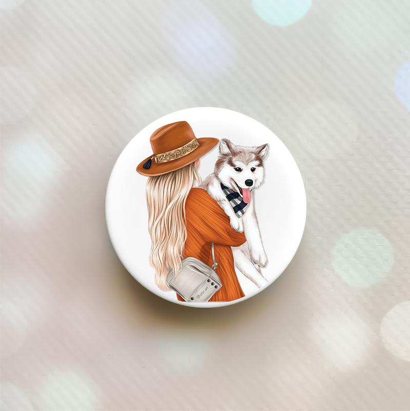 Держатель для смартфона / планшета попсокет popsocket белый :: девушка с собачкой (принт 1...