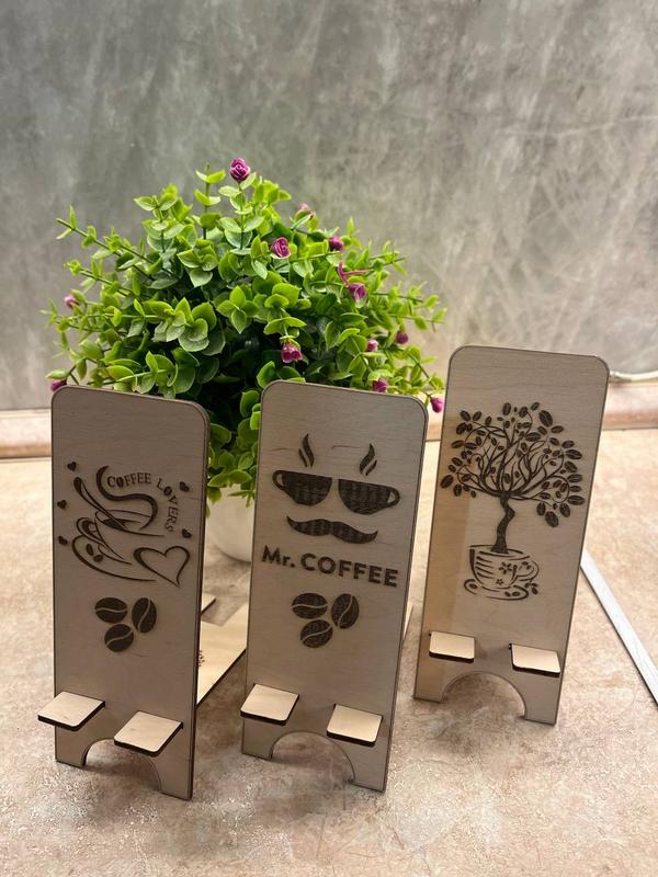 Пропонуємо підставки під телефон, планшет з двп товщиною 3 мм. Гравіювання може бути будь яке на Ваш смак. Розмір 20,5-8 см Ціна 50 грн за 1 шт