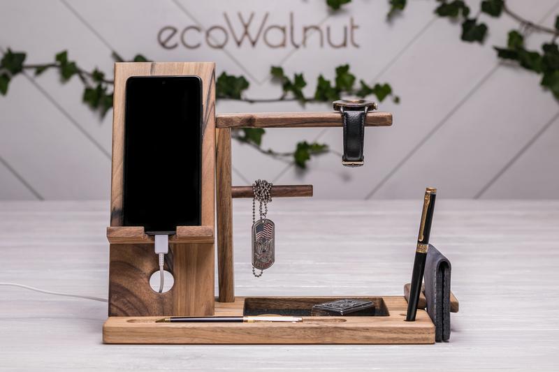 Органайзер чоловічий з дерева для годинника iwatch аксесуар настільний для телефона