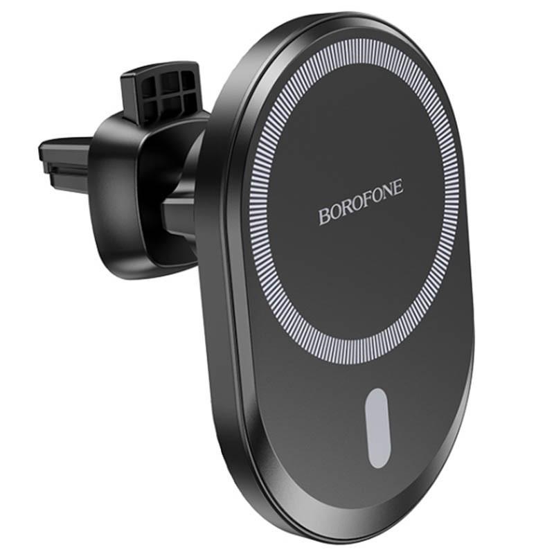 Аксесуар для швидкого доступу до смартфона та його зарядки в салоні автомобіля Підтримує бездротове заряджання за стандартом Qi Встановлюється в вентиляційну решітку за допомогою силіконової ніжки-прищіпки Кріплення телефона здійснюється завдяки магнітам всередині корпусу смартфона або чохла Отримує живлення від АЗП через роз'єм Туре-C (кабель у комплекті) За підтримки стандарту MagSafe потужність заряджання досягає 15 Вт Виконаний із якісного пластику й алюмінієвого сплаву Головка аксесуара має шарнірне з'єднання, що дає змогу змінювати кут нахилу екрана Бренд – Borofone Тип — автотримач із бездротовою зарядкою Матеріал – ABS пластик + акрил Вхід – 5V/2A, 9V/1.67A, 12V/1.5A Вихід – 5W/7.5W/10W/15W Відстань заряджання – 0-5 мм Роз'єм – Type-C Кріпити – затискач Місце встановлення — дефлектор автомобіля Сумісність — смартфони з підтримкою Qi і для iPhone починаючи з 12 серії