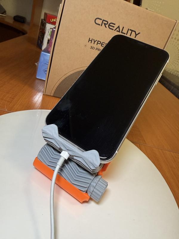Технологічна підставка для телефону з розʼємом під кабель зарядки. Складається з основи і шестерні яка провертається і регулює нахил телефону після чого фіксується. Міцний екологічний матеріал. Під замовлення можна обрати інші кольори або однотон. До кожного першого замовлення-флексі брелок у подарунок 🙂