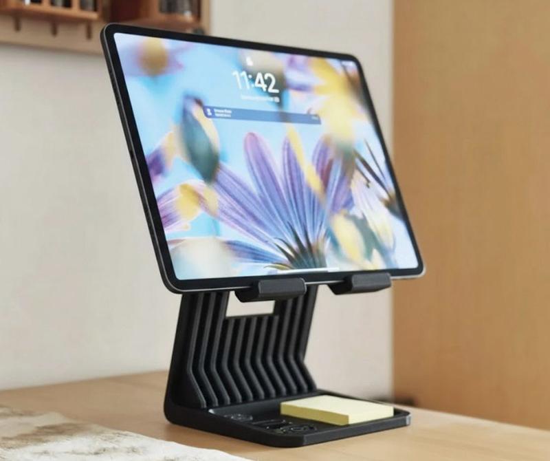 Ваш идеальный помощник для работы и отдыха! 📱📎 Эта подставка для планшета сочетает в себе надежный держатель для гаджета и удобный мини-органайзер. Продуманная конструкция позволяет установить планшет под комфортным углом для просмотра видео, видеозвонков или учебы, а специальная выемка в основании помогает держать порядок на столе. Почему этот держатель станет незаменимым на вашем рабочем столе? 📂 Умное пространство: В основании подставки расположено углубление — идеальное место для хранения скрепок, карт памяти, ключей, флешек или других мелочей, которые всегда должны быть под рукой. 📏 Стойкая конструкция: Высота 20 см и широкая база обеспечивают стабильность даже для больших планшетов. Гаджет надежно фиксируется, не скользит и не опрокидывается. 🌑 Стильный офисный декор: Лаконичные линии и матовая текстура 3D-печати делают подставку современным аксессуаром, подходящим к любому ноутбуку или монитору. 🛡 Забота о технике: Гладкая поверхность PLA пластика не оставляет царапин на корпусе вашего устройства. 🌿 Эко материал: Изготовлено из биоразлагаемого пластика на основе кукурузного крахмала, что делает изделие безопасным для здоровья и окружающей среды.