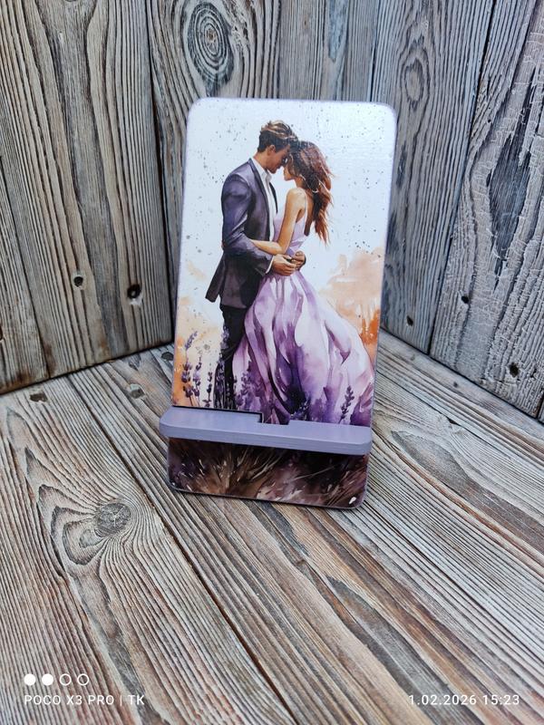 Зручна та гарна підставка для телефону. Основа фанера. Техніка декорування -декупаж. Лаковано акриловим безпечним лаком. Двобічна, зображення різні. Легко розкладається, щоб носити в сумочці.
