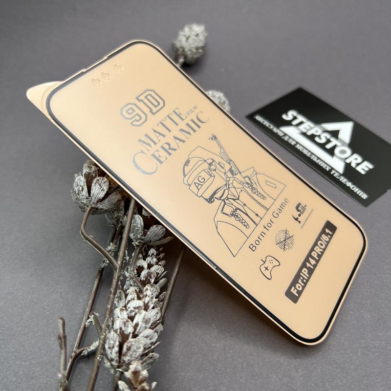 Захисне скло плівка матове 3d 9d для iphone 14 pro гнучке з чорною рамкою ceramics matte