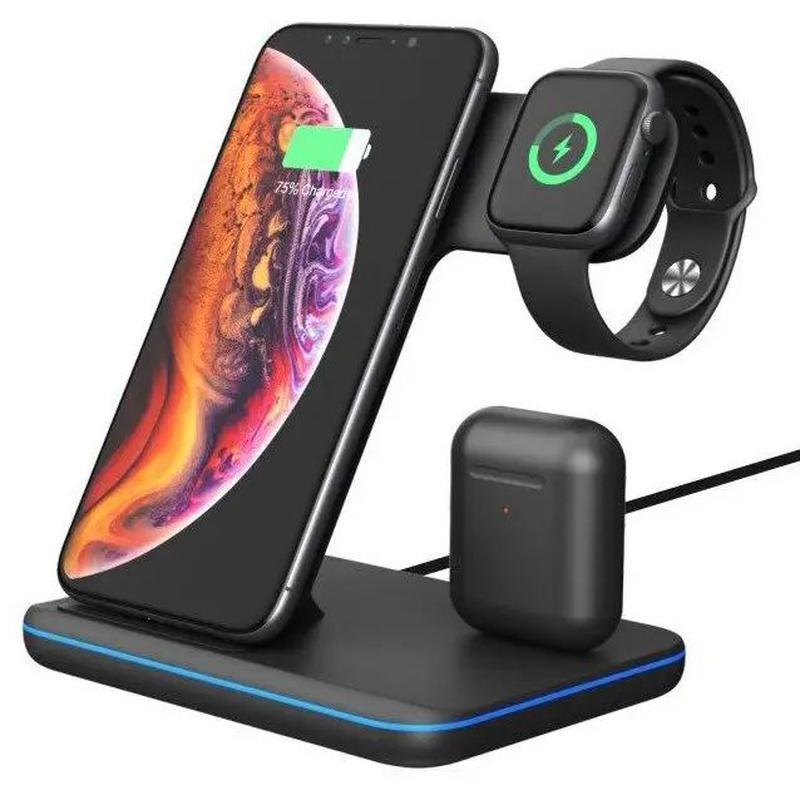 Бездротова зарядка стенд smart 3in1 fast 15 w (iphone+apple w...