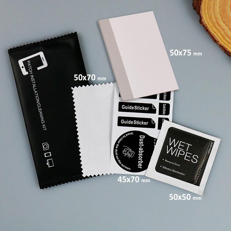 Набір для поклейки захисного скла / плівки 5 в 1 (серветка, фібра, стікер, шпатель) 500 шт...