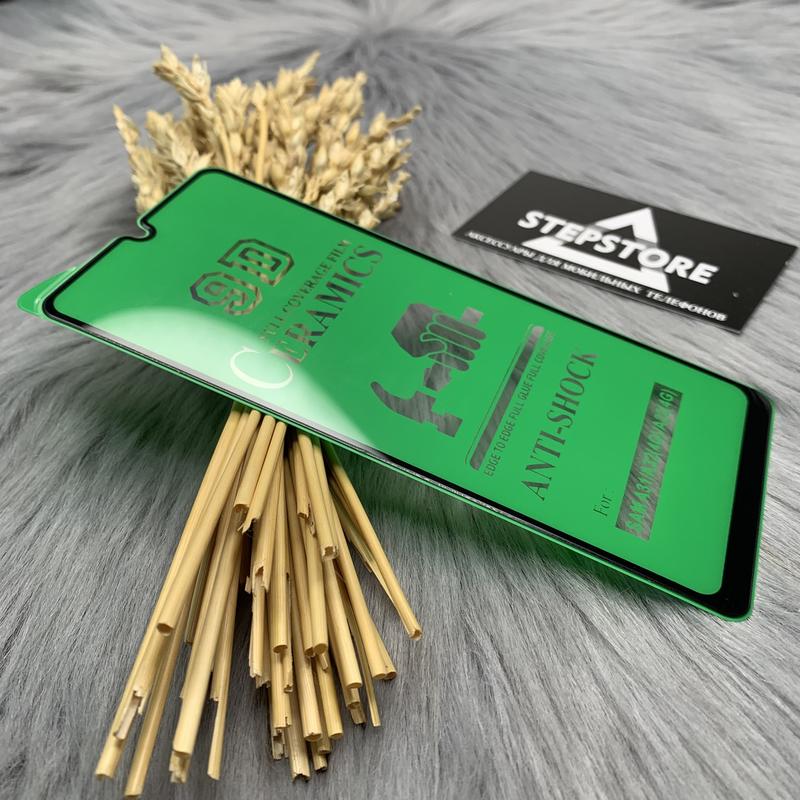Защитное гибкое стекло 3d для samsung m32 м325 ceramics керамическое с черной рамкой