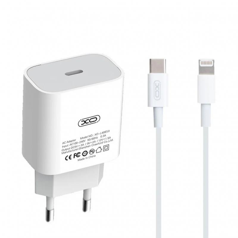 Сетевое зарядное устройство (адаптер) xo l40 pd/3a/18w + lightning white