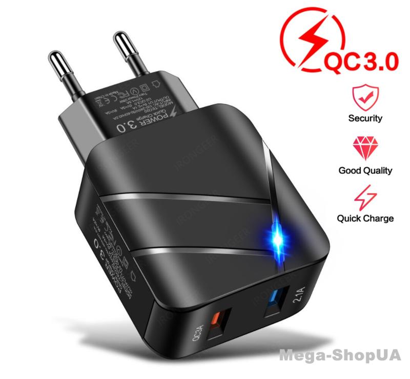 Мережний зарядний пристрій для швидкого заряджання 2 port USB - це потужний адаптер, який підтримує найновішу технологію швидкого заряду, з підтримкою протоколів швидкого заряджання Quick Charge. Інтелектуальна мікросхема USB визначає тип підключеного пристрою, регулює напругу і силу струму до 3A забезпечуючи швидку зарядку і високу сумісність з пристроями більшості брендів. Зарядний пристрій оснащений інтелектуальним чіпом для захисту ваших пристроїв від короткого замикання, перенапруги, перегріву та перевантаження струмом. Вогнестійкий корпус ABS не перегріватиметься під час заряджання, забезпечуючи відмінну продуктивність, незалежно від подряпин, ударів або падінь. Захистіть себе та своє обладнання зсередини. Заряджання оснащено портом Quick Charge 3.0. Інший порт максимально видають по 2.1 А. Зарядка сумісна з усіма телефонами, планшетами та іншими гаджетами. Зарядка оснащена спеціальним смарт-чіпом, що автоматично визначає оптимальний струм, який може прийняти телефон або планшет. Також зарядка оснащена смарт- чіпами від перегріву та короткого замикання. особливості: Заряджання оснащено портом Quick Charge 3.0. LED - зручний для використання у нічний час. 2 USB порту. Заряджання сумісна з усіма телефонами, планшетами та іншими пристроями. Компактні розміри. Вогнезахисні матеріали. Захист від короткого замикання. Захист від перегріву. Характеристики: Вигляд: Мережевий зарядний пристрій. Модель: LZ-Q820. USB-порти: 2. Вхід: 100-240 V. Вихід: 1 ports - Quick Charge 3.0. А, 1 ports - 2.1 A. Вихідний інтерфейс USB. LED-підсвічування. Розмір: 85 х 50 х 26 мм. Матеріал: Пластик ABS+метал. Колір чорний. Комплектація: 1 х Зарядний пристрій (без кабелів). 1 х Індивідуальне упакування. * Зовнішній вигляд товару може трохи відрізнятися від фотографій на сайті залежно від партії.