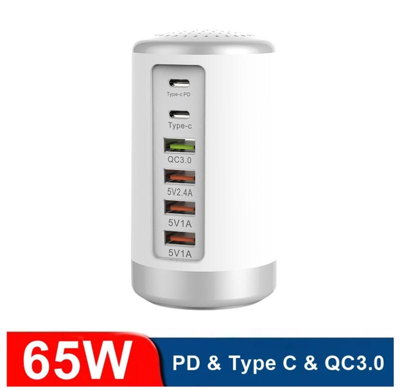 Зарядний пристрій 65w pd + qc3.0 quick charger usb 6 port rt731u білий