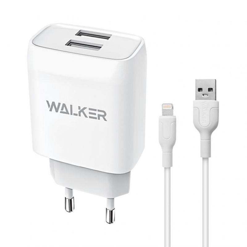 Мережевий зарядний пристрій (адаптер) 2в1 walker wh-31 2 usb / 2.1 a + lightning white