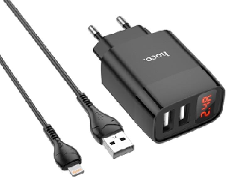 Зарядное устройство 220в usbx2 с кабелем usb - lightning hoco c86a