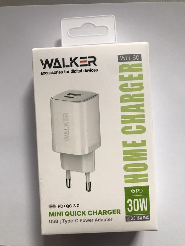 WALKER WH-60 – это стильное и сверхмощное зарядное устройство, которое гарантирует быструю зарядку сразу двух мобильных гаджетов. Адаптер оснащен 1 USB портом с функцией Quick Charge 3.0 и портом Type-C с функцией Power Delivery. WH60 обладает силой тока 3А и мощностью 36W max (Type-C: 30W, USB: 18W, Type-C+USB: 18W), что обеспечивает максимально эффективную зарядку. Зарядное устройство изготовлено из прочного пластика и доступно в белом цвете.