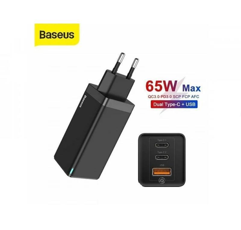 Зарядний baseus 65w gan 2c+u bs-e915 ccgan-b01 gan mini quick travel charger black