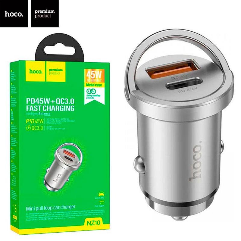 Автомобільний зарядний пристрій hoco nz10 pd45w + qc3.0 1usb silver