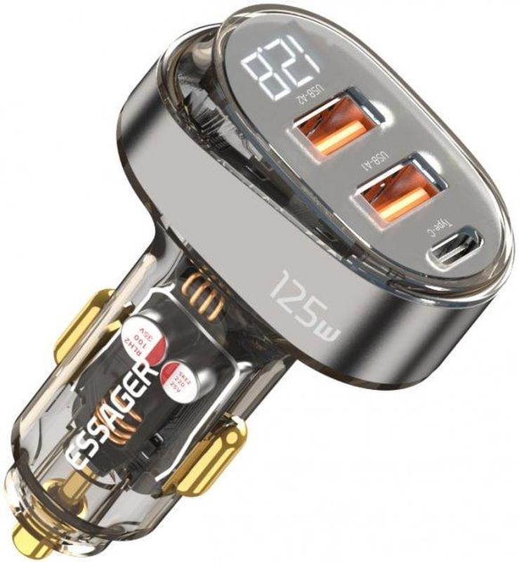 Автомобільний зарядний пристрій essager transparrent digital display 125w brown (ecc2ac-fm...
