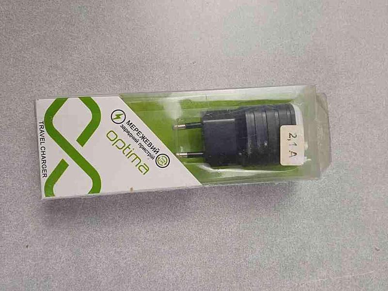 Зарядніший пристрій адаптатор для мобільного телефону б/у сзу 2usb optima (2.1a) black