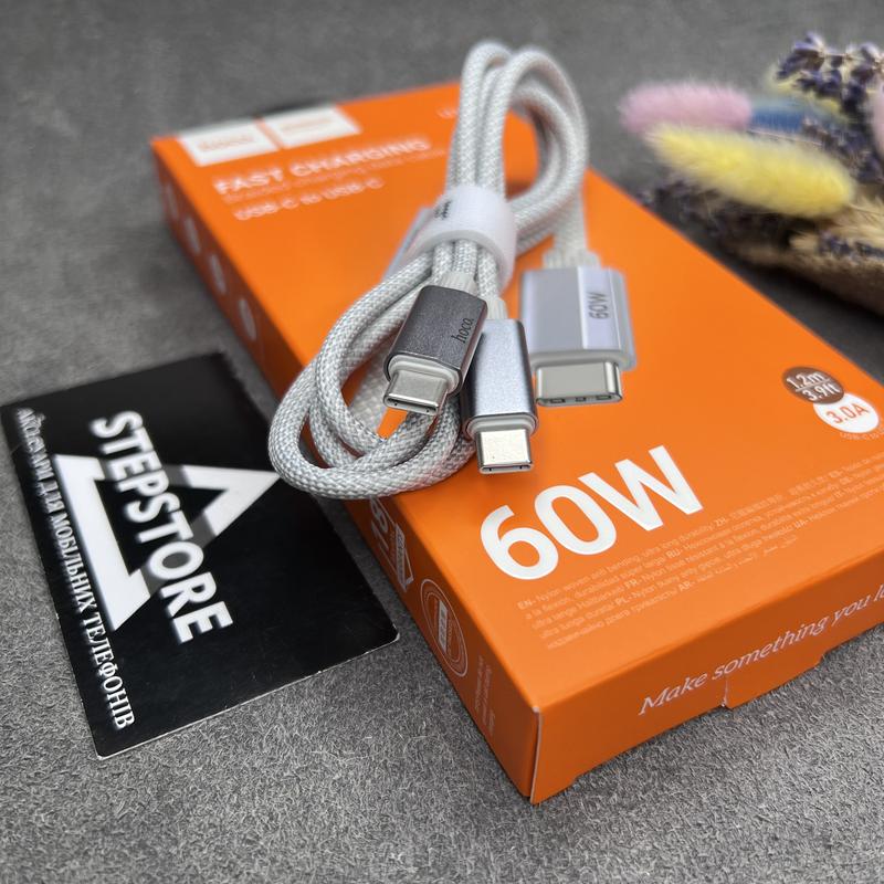 Кабель для заряджання hoco u134 type-c to type-c 60 w у тканинному обплетенні 1.2 м для sa...