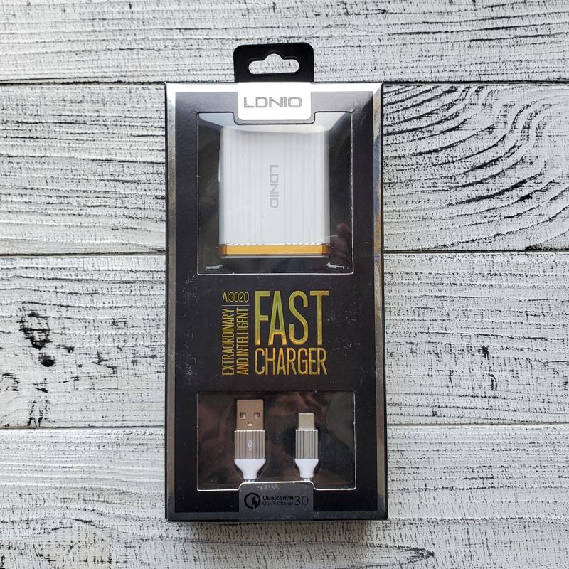 Зарядний пристрій ldnio ai3020 quick charge 3.0 18w з кабелем type-c