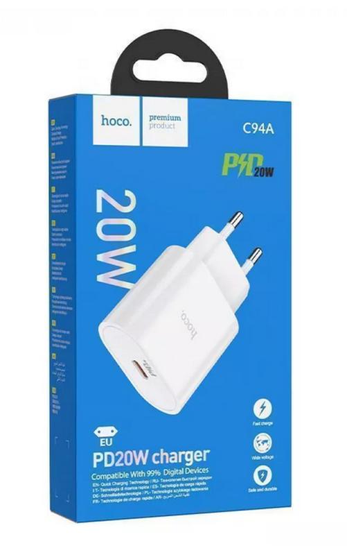 Мережевий зарядний пристрій мзп із швидкою зарядкою hoco c94a metro 20w (1 type-c)