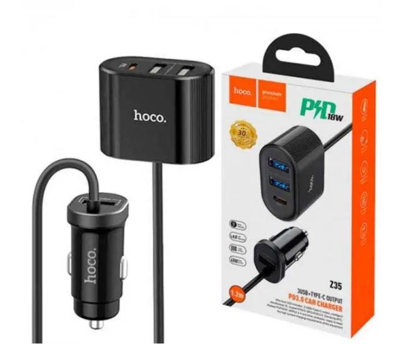 Зарядний пристрій Hoco with LED Z35 - це компактний аксесуар для підзарядки та роботи будь-яких мобільних пристроїв під час поїздок та подорожей. Даний адаптер є ще й подовжувачем для роз'єму прикурювача, він має довгий кабель, завдяки якому пасажири, що знаходяться на задньому сидінні, з легкістю і комфортом зможуть підзарядити свої гаджети. Особливістю є наявність трьох роз'ємів USB та одного роз'єму Type-C, які дозволяють одночасно заряджати кілька гаджетів. Адаптер Hoco with LED Z35A 3USB, 2.4A має стабільний показник потужності, максимальна вихідна потужність одного з портів 2.4А забезпечує швидку зарядку підключених пристроїв. Також зарядка оснащена електронними компонентами для захисту від короткого замикання, перенапруги та перевантаження струмом, що робить його використання абсолютно безпечним. Характеристики: Вхід: DC 12-24 V; Вихід: USB 1: 5V-2.4A, USB 2/3: 5V-2.4A.,Type-C: 5V-3A (PD), 9V-2A (PD) (PD)-18 Вт. Вбудований індикатор LED Розмір: 30*21*50 мм (основний автомобільний зарядний пристрій)/60*30*45мм (додатковий зарядний пристрій) Довжина кабелю: 1,2 м