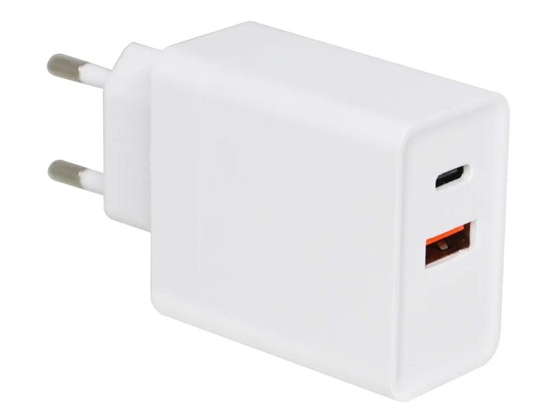 Мережевий зарядний пристрій USB-USB Type-C 7614 Практичний зарядний пристрій із двома портами USB. Одночасно можна заряджати кілька пристроїв. Характеристики: - 2 роз'єми USB: USB3.0+USB тип-C (20W Max). - Вхідна напруга: AC 100-240V-50/50Hz (0.6A). - Вихідна напруга USB тип-C: DC 5V (3A) / 9V (2A) / 12V (1.5A). - Вихідна напруга USB 3.0: DC 5V (2.4A) / 9.0V (2A) / 9.0V (2.2A) / 12V (1.5A). - Колір білий.