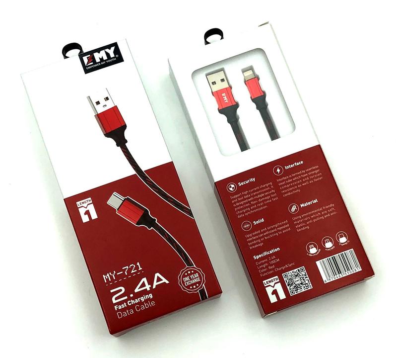 Дата кабель EMY MY-721 для швидкого й ефективного заряджання вашого ґаджета та передавання даних. Підтримка сильноточного заряджання та швидкого передавання даних. Він розроблений із множинним захистом. Швидке заряджання без пошкоджень і швидка синхронізація даних у реальному часі. - Струм 2.4 А забезпечує надшвидке заряджання та передавання даних. - Матеріал: використання екологічно чистих матеріалів, м'яких, еластичних, стійких до розтягування і вигинання. - Довжина: 1 м.