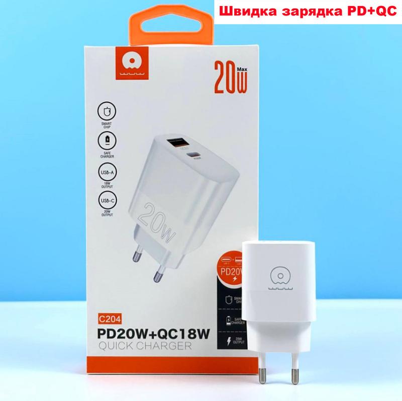Сетевое зарядное устройство быстрая зарядка pd20w+qc3.0. wuw c204