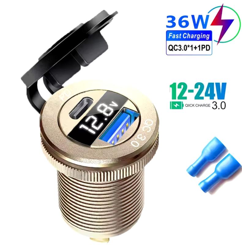 Врізне зарядне авто мото pd/quick chаrge 3.0/вольтметр