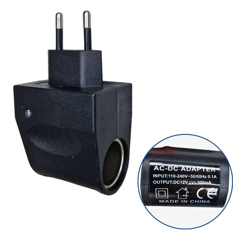 Адаптер для переходу з розетки на гніздо автомобільного прикурювача, перевірки та використання автомобільних аксесуарів. LED-індикатор роботи Вхід: 110-240 В 50/60 Гц 0.1 А, євровилка Вихід: 12 В 0.5 А, гніздо прикурювача Розміри (без урахування вилки): 4.7 х 3.5 х 6.9 см