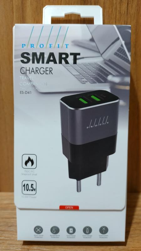 Зарядное устройство profit es-d41 2 usb 5v 2.1a 1a металл black