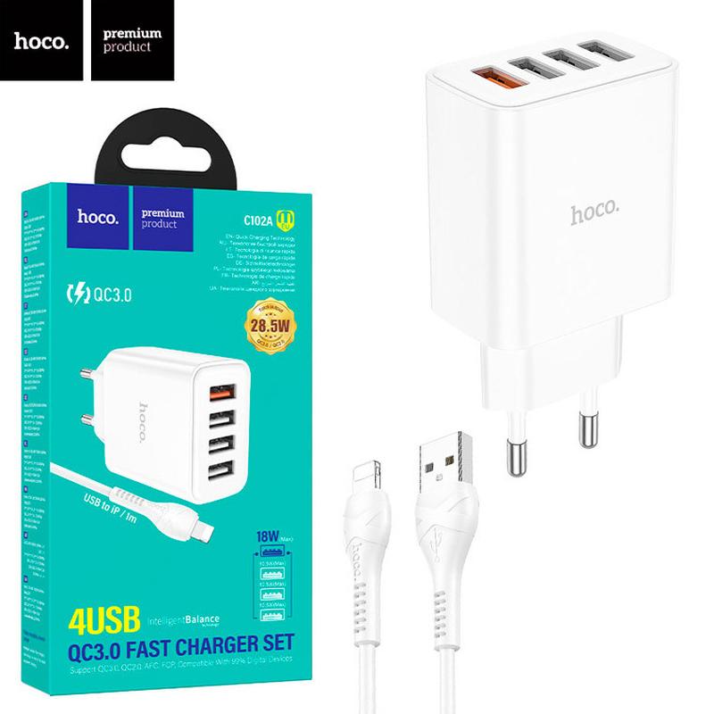Сетевое зарядное устройство Hoco C102A 4USB 2.1A Lightning white