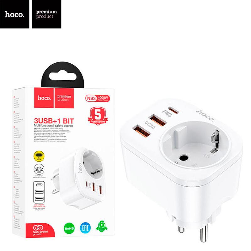 Сетевое зарядное устройство Hoco NS3 PD20W + QC3.0 2USB 1 розетка white