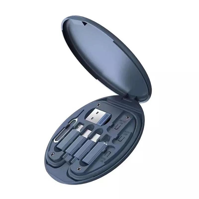 Набор кабелей для передачи данных и быстрой зарядки, 60 Вт с подставкой для смартфона Описание: 1. Безопасная зарядка и передача данных: мини-цифровой гаджет имеет четыре разных порта для зарядки и передачи данных для устройств Android/IOS . Содержит кабель USB Type-C с 3 usb-адаптерами. 2. Набор имеет все, что вам нужно для зарядки и синхронизации вашего устройства. Чехол для хранения защищает концы кабелей и предотвращает их запутывание в сумке. 3 . Прочный материал: все адаптеры изготовлены из устойчивого к царапинам алюминиевого сплава. Внутренний медный провод больше и толще обычных кабелей, что помогает увеличить скорость зарядки и передачи данных для телефонов, планшетов, ноутбуков и других устройств. 4. Компактный и портативный: Этот набор кабелей маленький и легкий, легко брать в карман, кошелек и сумочку. 5. Многофункциональный чехол для хранения: цифровой комплект оснащен иглой для сбора карт и слотом для карты памяти/слотом для sim-карты. Набор поможет быстро зарядить телефоны/планшеты/ноутбуки и другие устройства. Чехол для переноски также является держателем телефона. Характеристики: Разъем : LIGHTHING,USB, Type-C, Micro-USB Соединитель : Type-C Максимальный ток: 3А Длина кабеля: 28 см Диаметр чехла для хранения: 8,5 см Вес: 60 г Цвет: Темно - синий Гарантия: 14 дней