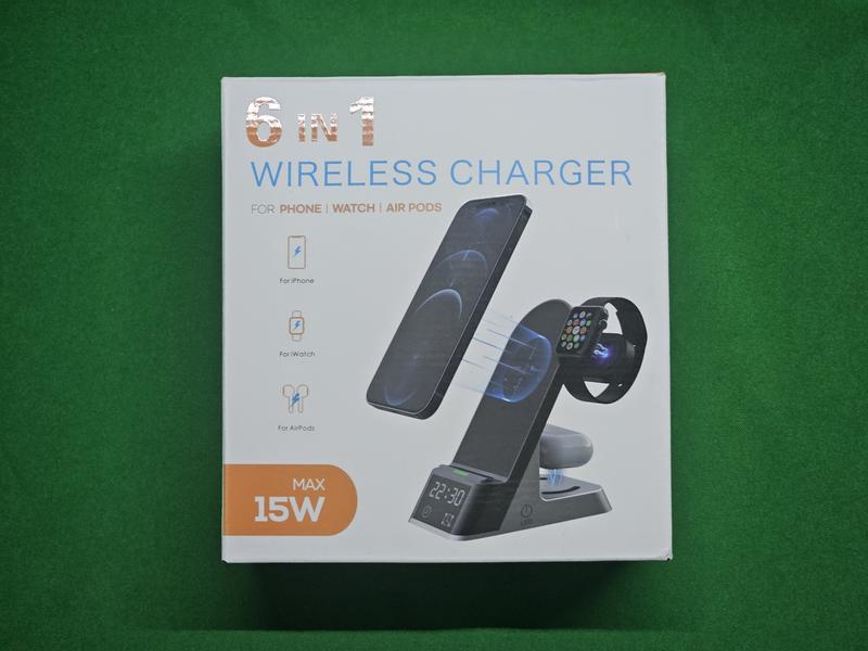 Зарядное устройство 6 в 1, беспроводное на 15w. для смартфонов, наушников, часов.