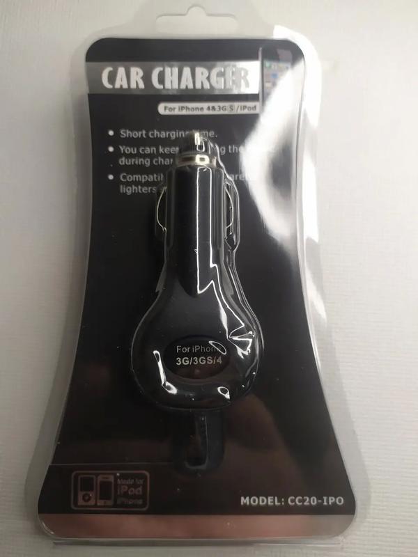 Тип комплектуючих: Зарядні пристрої Кілька примірників у наявності Авто зарядка в прикурювач з кабелем для iPhone 3G / 3GS / 4G / 4GS