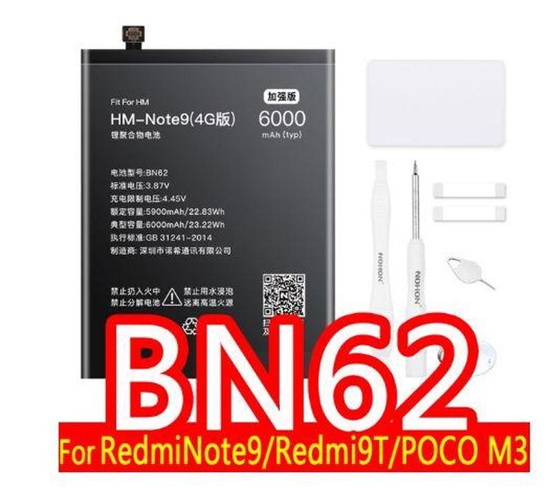Батарея для телефона bn62 nohon для redmi 9t/poco m3 6000 ма·год + набір інструмент bn62