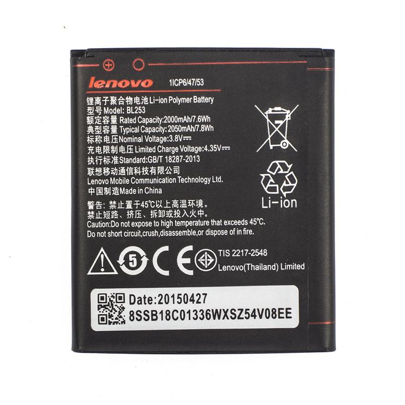 Акумуляторна батарея для Lenovo BL253/A2010 AAA-Class високої якості, що має ємність 2000 mAh. Технічні параметри цього акумулятора повністю відповідають тим, що заявлені виробником на етикетці виробу. Клас якості ААА означає, що цей акумулятор має фактичну ємність мінімум 80-100% від номінальної, яка позначена на пакованні. Безпечна робота пристрою гарантується наявністю контролерів перезаряджання та перерозряджання. У нашому магазині ви можете за найкращими цінами купити акумулятори для телефонів гуртом.